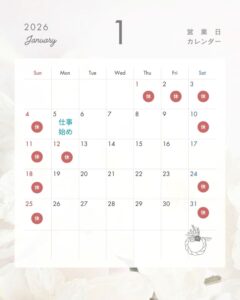 さて、2026年1月の休業日について、上記カレンダーのとおりご案内申し上げます。